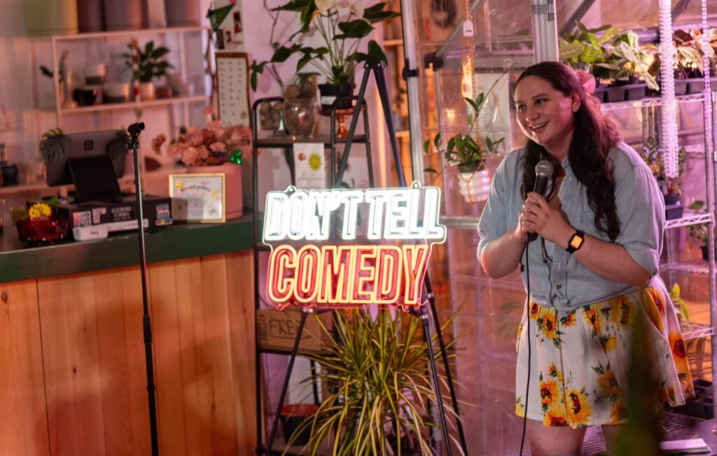 It’s corporate comedy. It is just that feel good. I’m always positive. I give out compliments for fun. I will just look at someone in the audience and be like, you look beautiful today. That sometimes gets a laugh. But it genuinely, that is my style of comedy. So I’m not afraid to share that in the world.